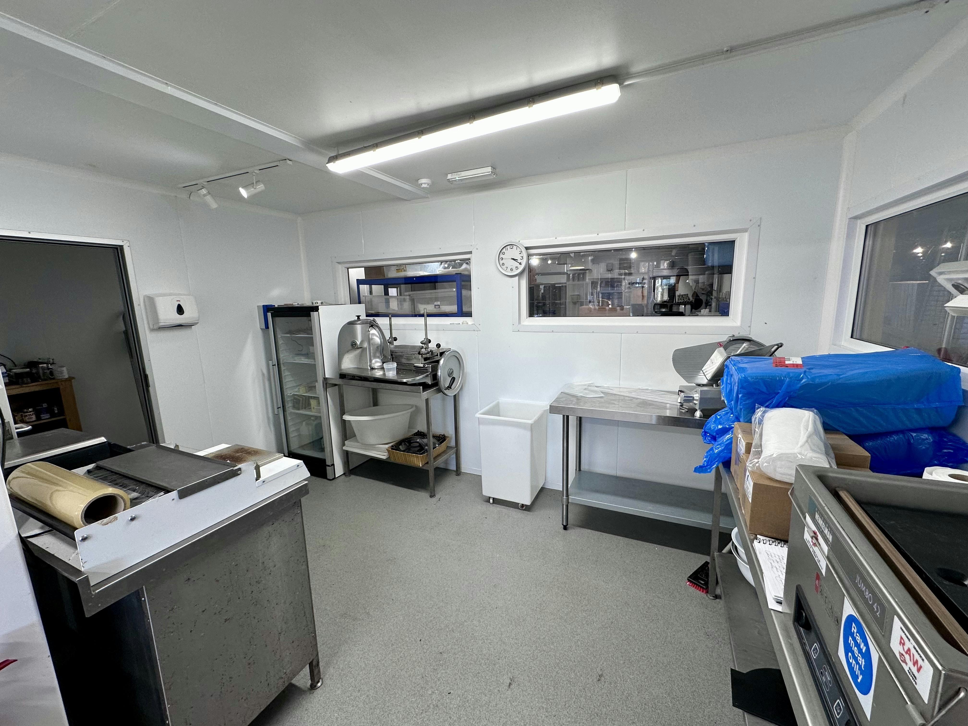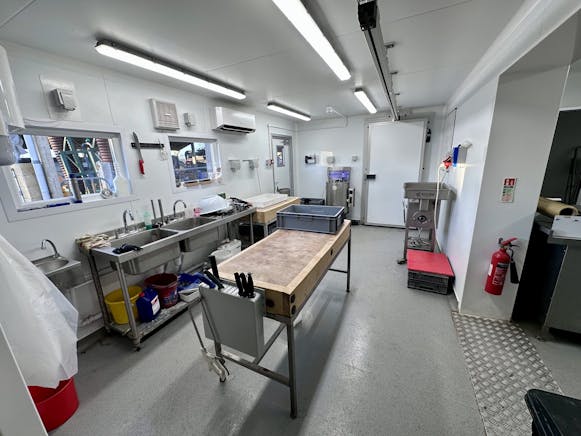Food Production Unit with light and power, partial air-conditioning, comprehensive work and storage areas, and extensive cold store facilities. Parking directly outside and a further large car park opposite.