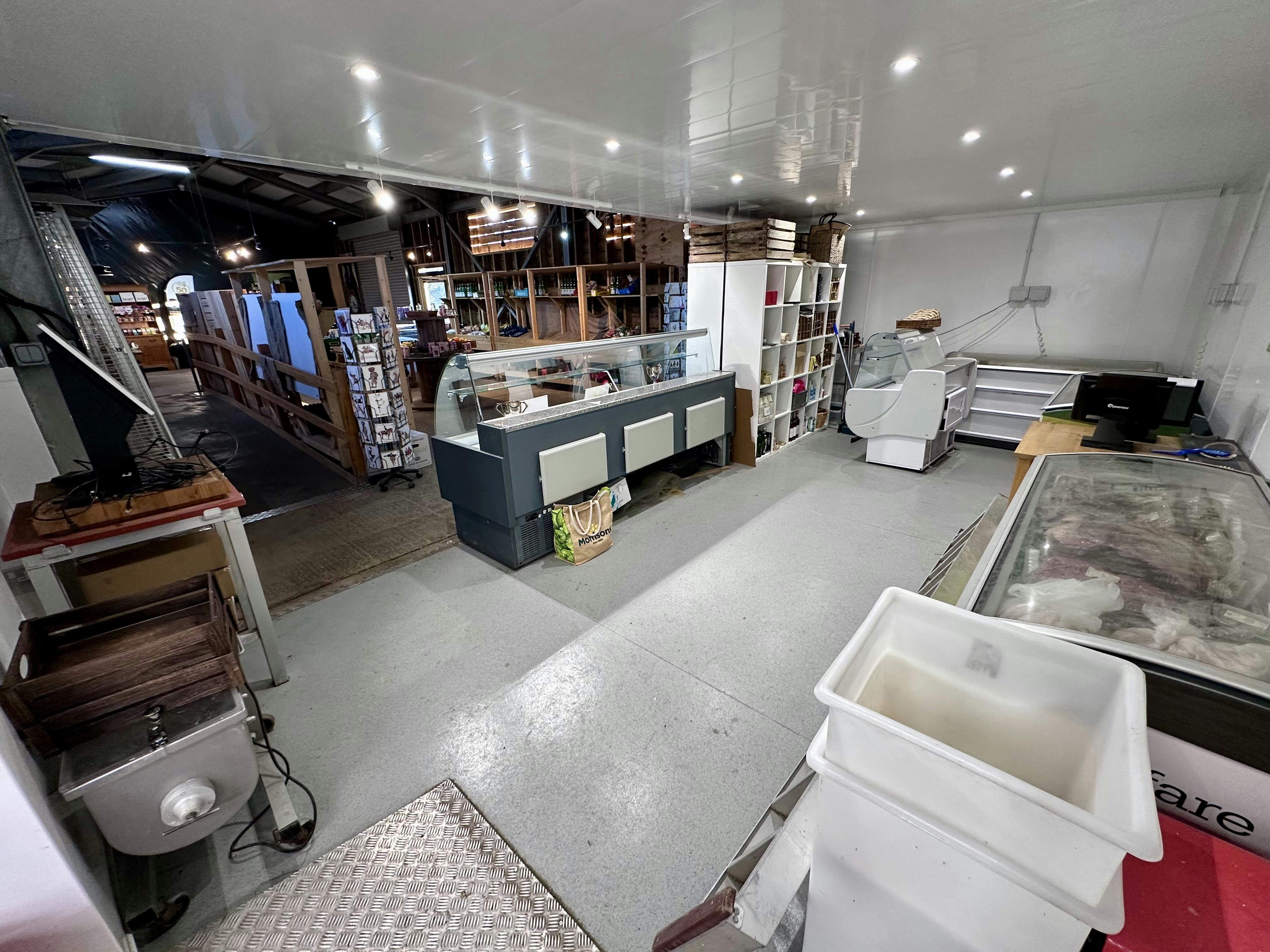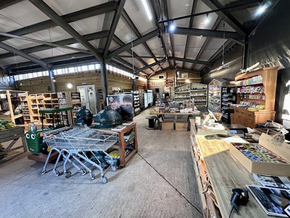 A high-quality Farm Shop and Food Production / Kitchen Unit comprising steel portal frame building serving as the shop, and modular building HACCP compliant serving as the food production part. Ideal for continuation of the existing use, or possibly alternative uses within Class E.
